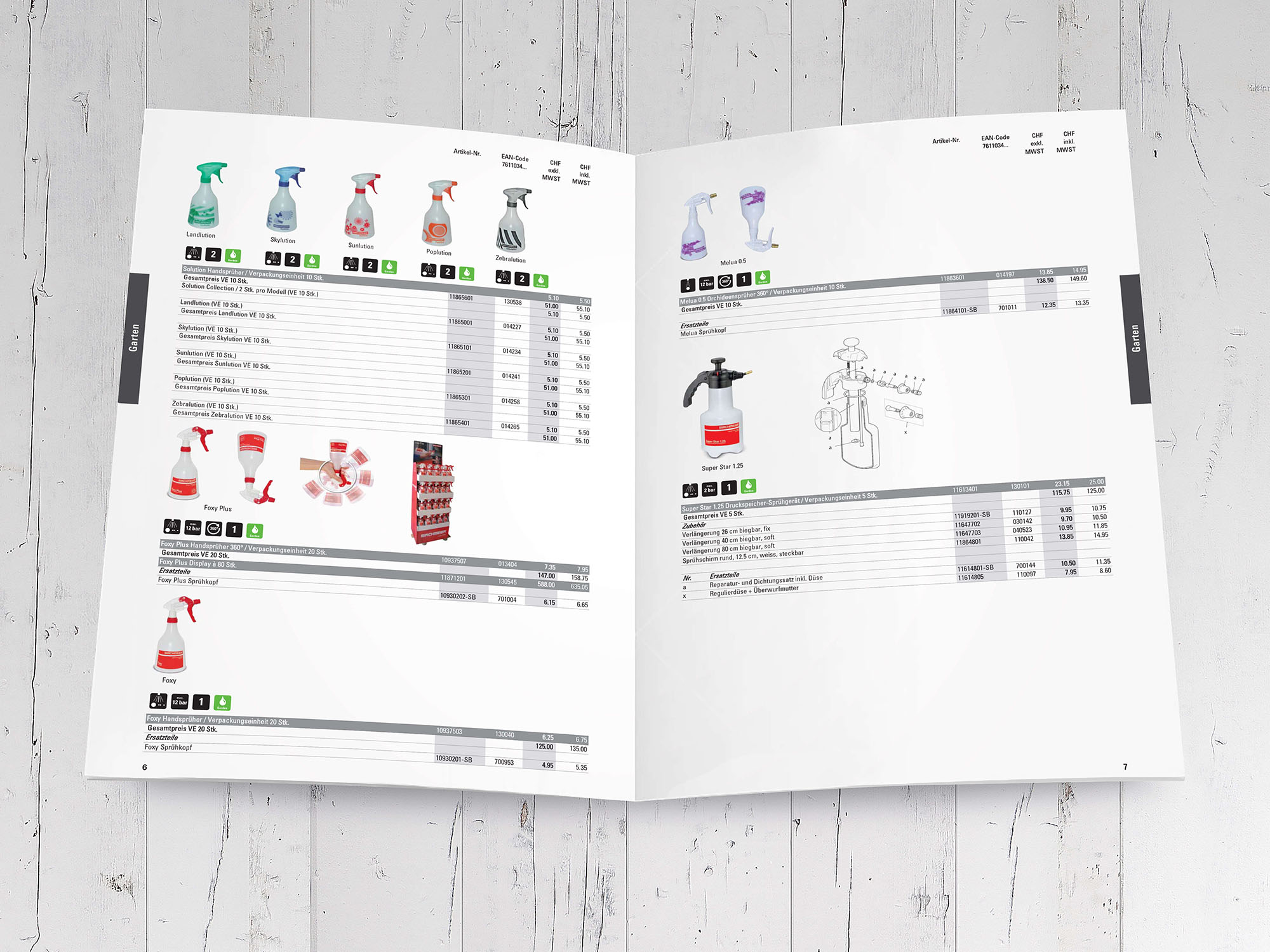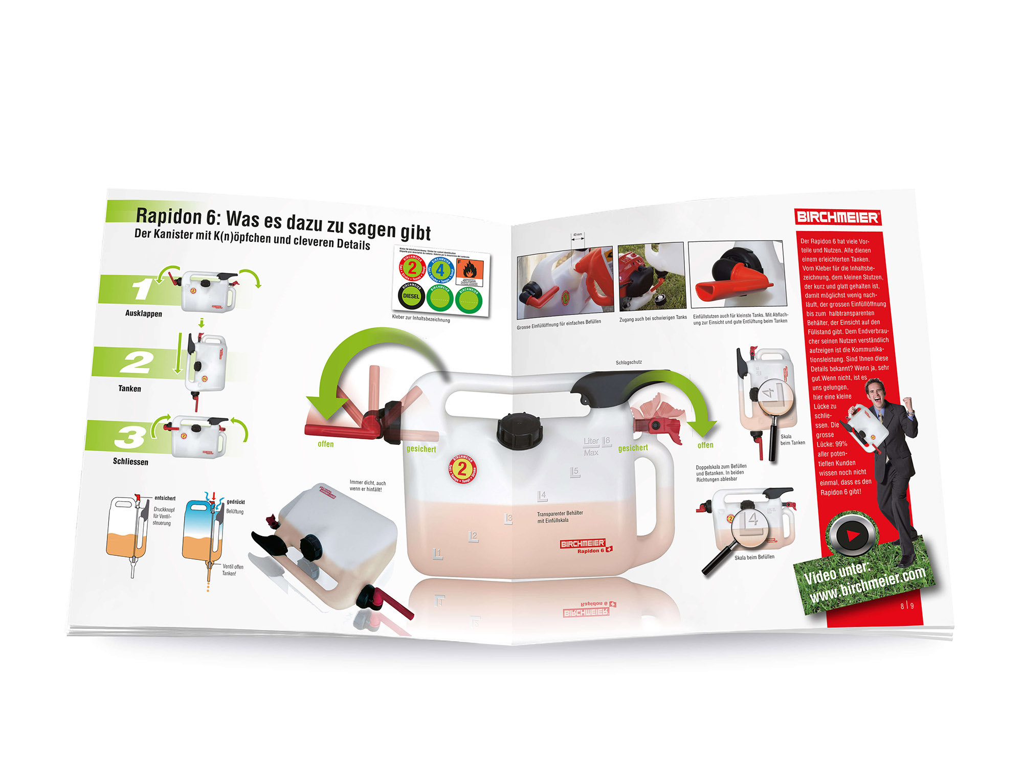 Ob ein ganz spezieller Kleber für den intelligenten Benzinkanister Rapidon, einen speziellen Sprühgerätehänger um vor Ort – am Point of Sale – den Kaufentscheid zu gewinnen, oder ein neues Design für die günstigen Sprühfläschchen für zu hause. Die Lösung wird nach strengen CI-Richtlinien innerhalb weniger Tage realisiert.